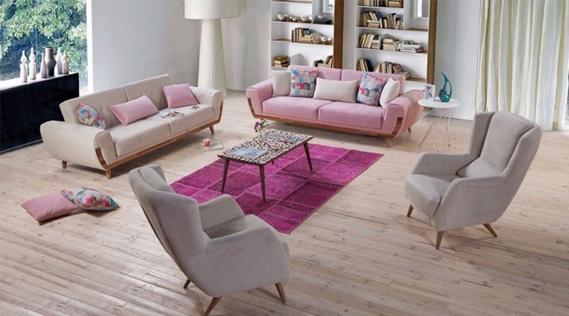 Koltuk takımı ‘nız pembe ise halı perde gibi tamamlayıcı öğelerinizi açık tonlardan ve pastel renklerden seçebilirsiniz. Ya da kendinizi gri ve pembenin uyumuna bırakabilirsiniz. Mavinin pembe ile olan ahengini de gözden kaçırmayalım. Özellikle lacivert, daha da aykırı bir etki yaratmak istiyorsanız camgöbeği ile farklılığınızı ön plana çıkarabilirsiniz.