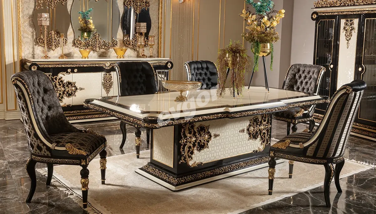 Saraylı Siyah Klasik Yemek Masası, şıklığı ve göz alıcı tasarımı ile salonunuzun vazgeçilmezi olacak.