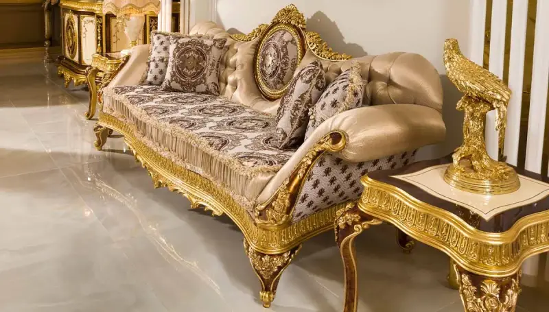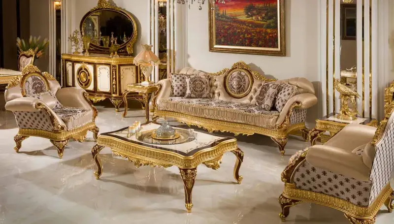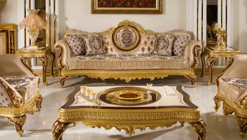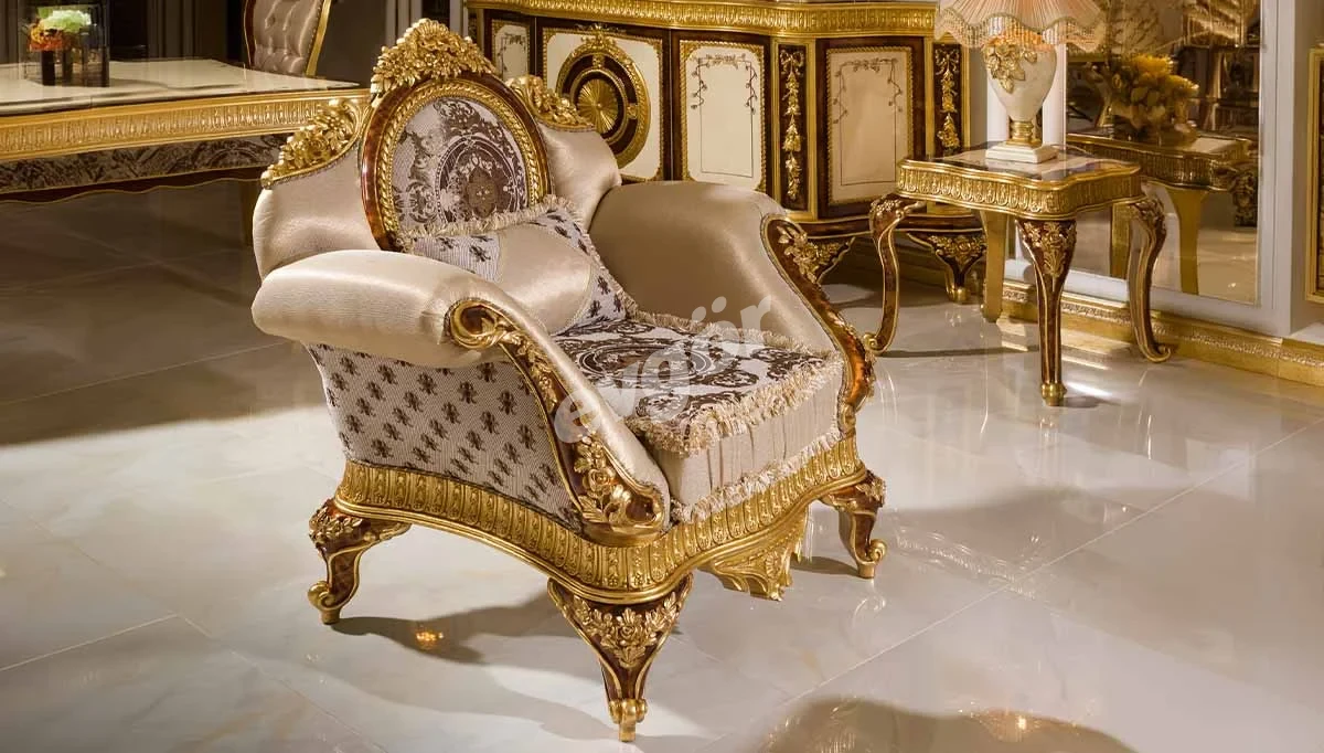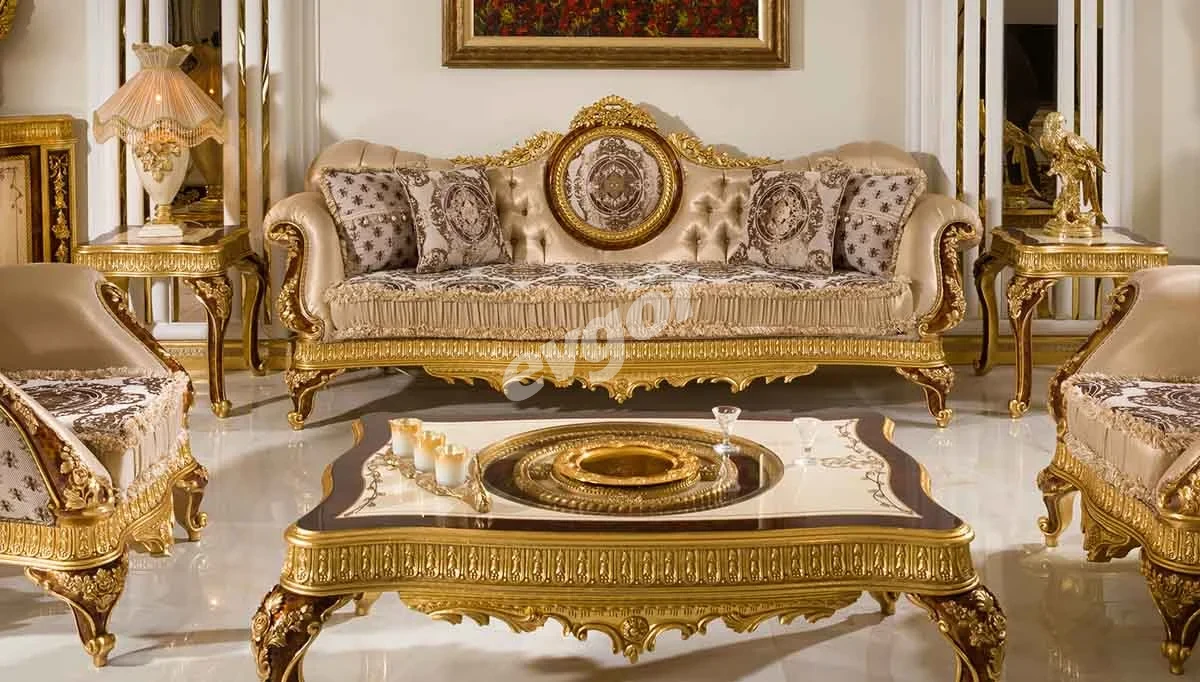 Zarif bir dokunuş için kaliteli kumaşlarla bezeli olan Klasik Koltuk Takımı varaklı tasarımların klasik estetiğiyle birleşerek benzersiz bir stili sizlere sunuyor.