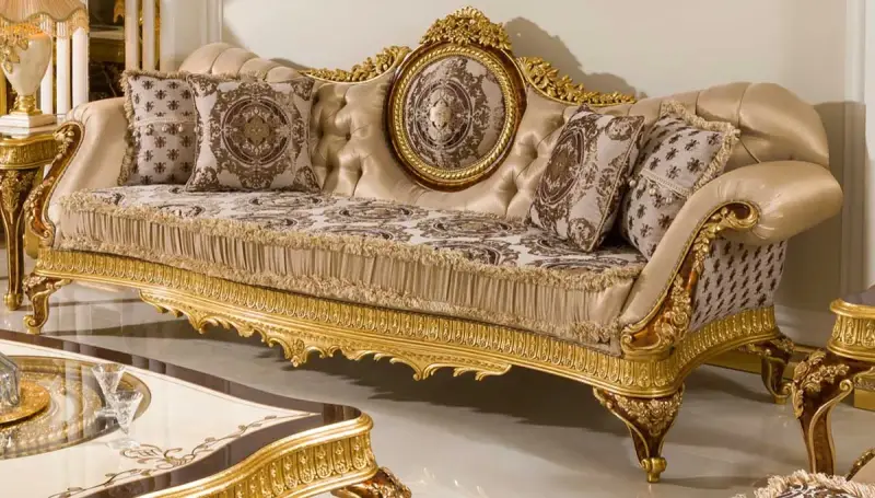Zarif bir dokunuş için kaliteli kumaşlarla bezeli olan Klasik Koltuk Takımı varaklı tasarımların klasik estetiğiyle birleşerek benzersiz bir stili sizlere sunuyor.