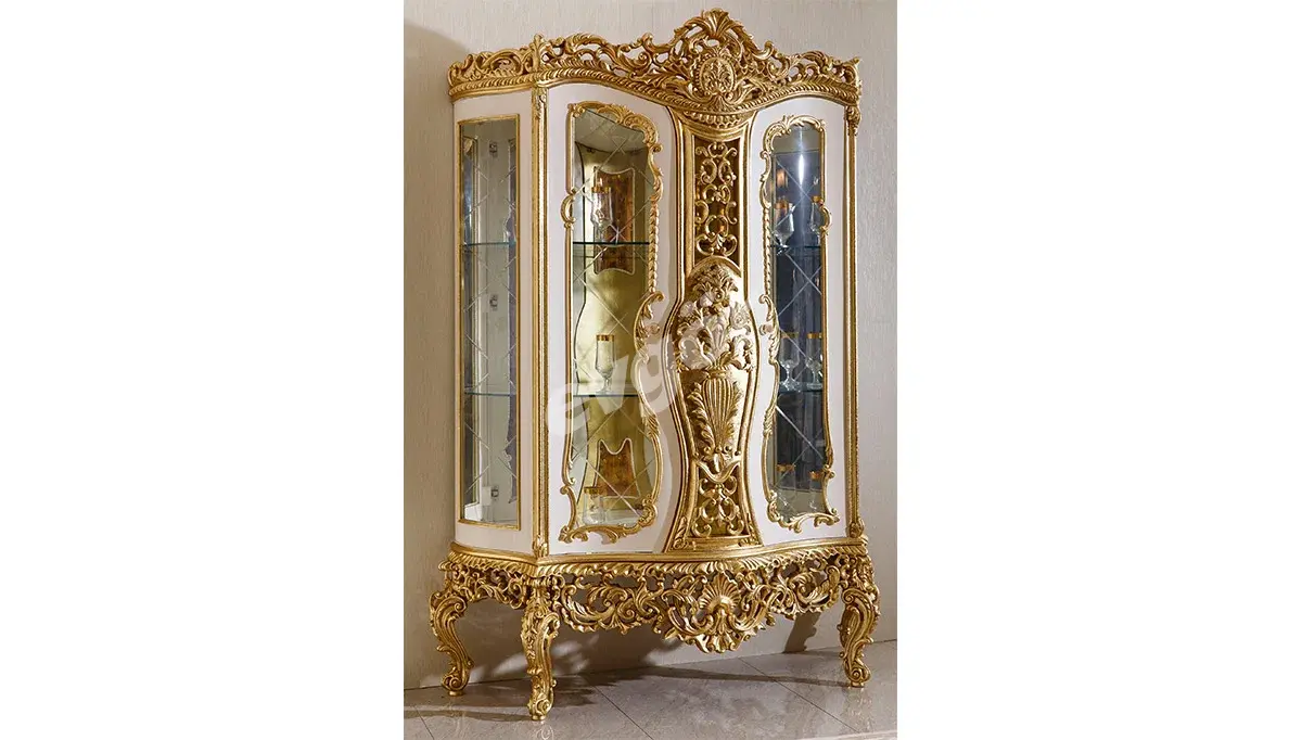 Vitrin cam kapakları, cam rafları ve çekmece bölümleri ile kullanım kolaylığı, işlemeli tasarımı ise evinize şıklık sunuyor.