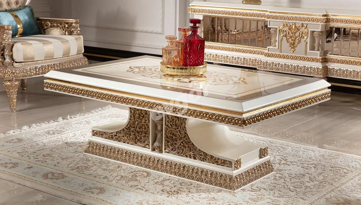 Selçuklu Krem Klasik Orta Sehpa, şıklığı ve göz alıcı tasarımı ile salonunuzun vazgeçilmezi olacak.