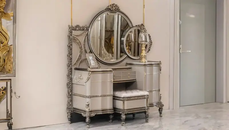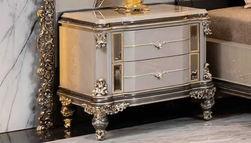 Avangarde Yatak Odası Takımlarının parçaları arasında bulunan şık Yatak, Komodin, Şifonyer ve Gardırop varaklı tasarımların klasik estetiğiyle birleşerek benzersiz bir stili de sizlere sunuyor.
