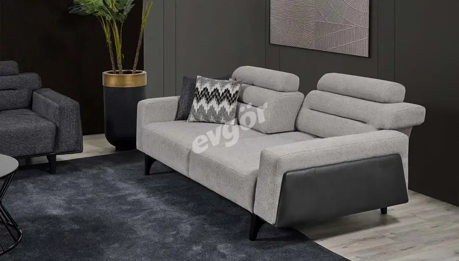 Sorti Antrasit Yataklı Bej Üçlü Koltuk