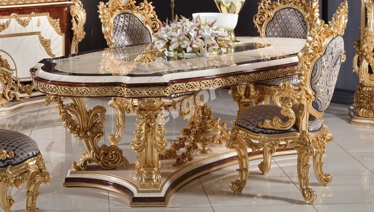 Sultan Krem Klasik Yemek Masası, şıklığı ve göz alıcı tasarımı ile salonunuzun vazgeçilmezi olacak.