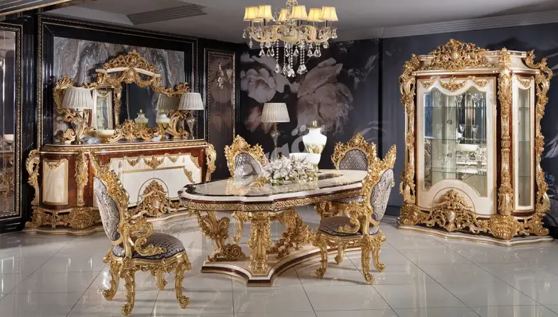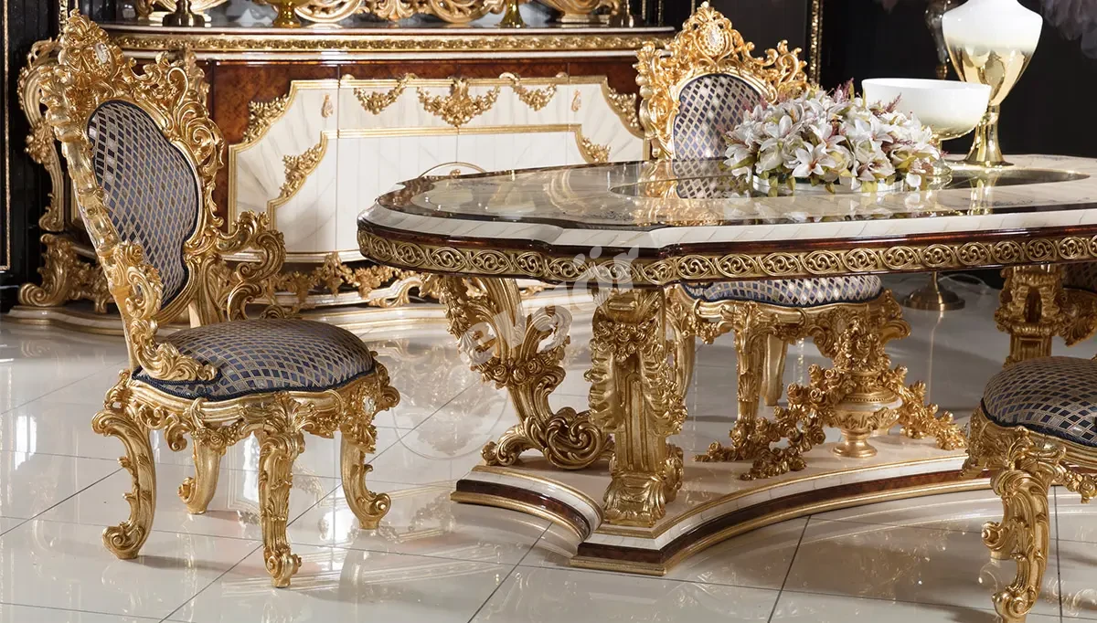 Sultan Krem Klasik Yemek Odası, şıklığı ve göz alıcı tasarımı ile salonunuzun vazgeçilmezi olacak.