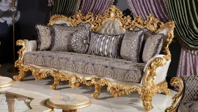 Sultan Krem Klasik Üçlü Koltuk, şıklığı ve göz alıcı tasarımı ile salonunuzun vazgeçilmezi olacak.