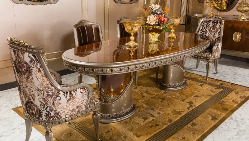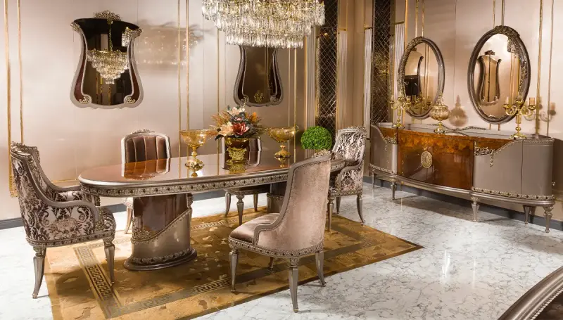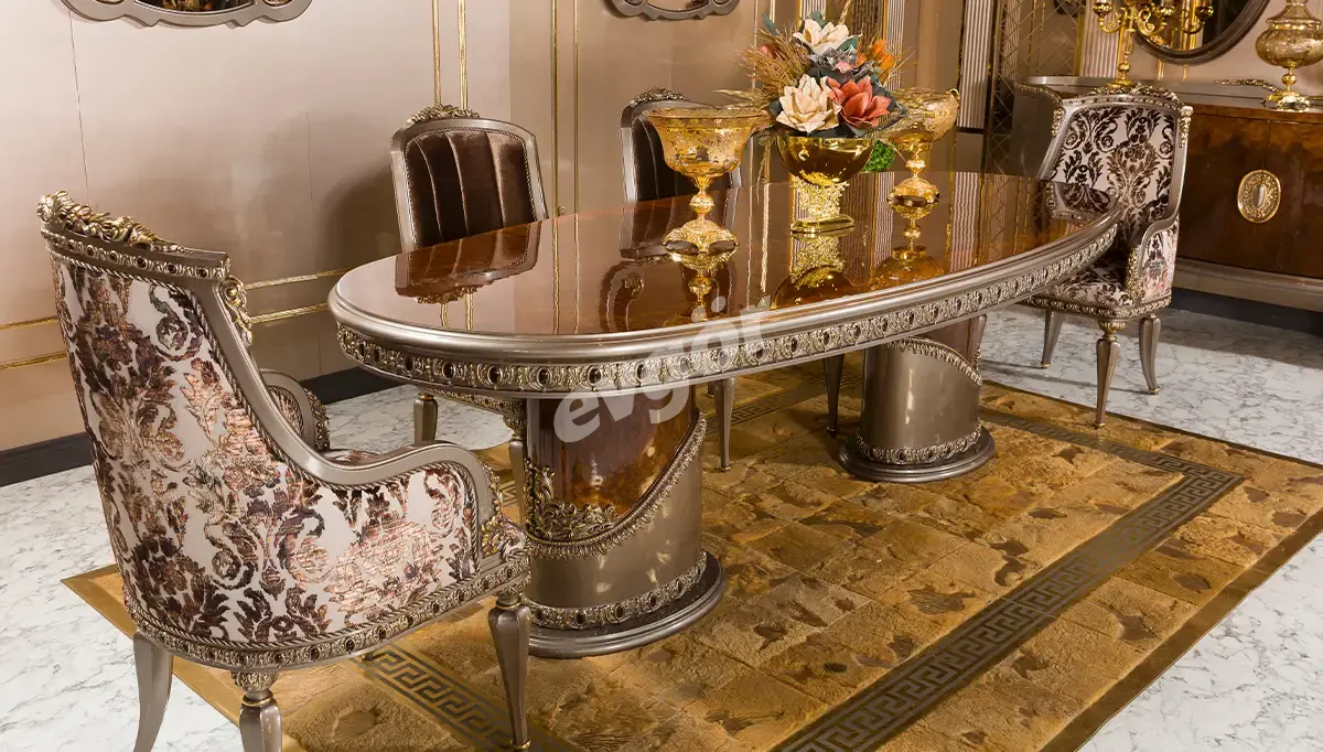 Süveyda Lüks Yemek Odası, asaleti ve göz alıcı tasarımı ile Evgör Mobilya'da sizleri bekliyor.