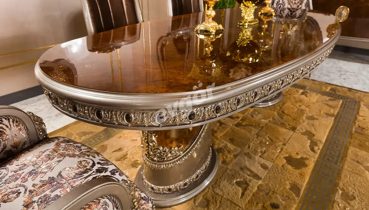 Süveyda Lüks Yemek Odası, asaleti ve göz alıcı tasarımı ile Evgör Mobilya'da sizleri bekliyor.