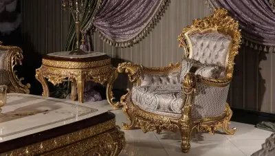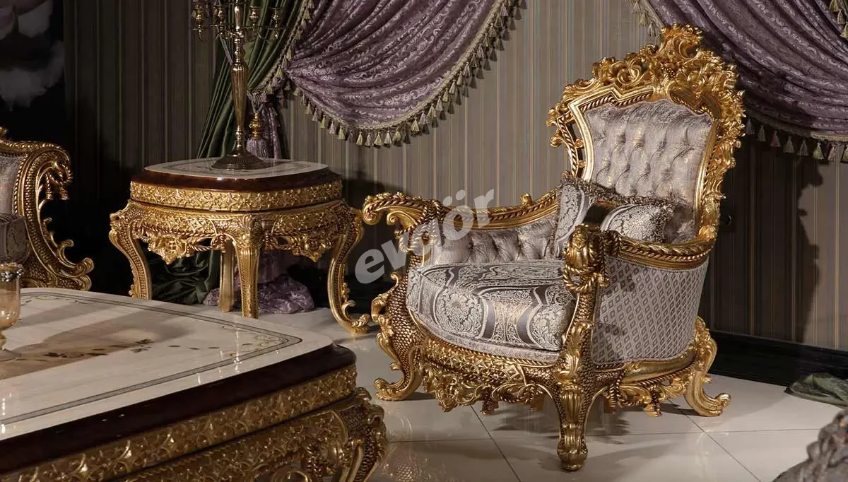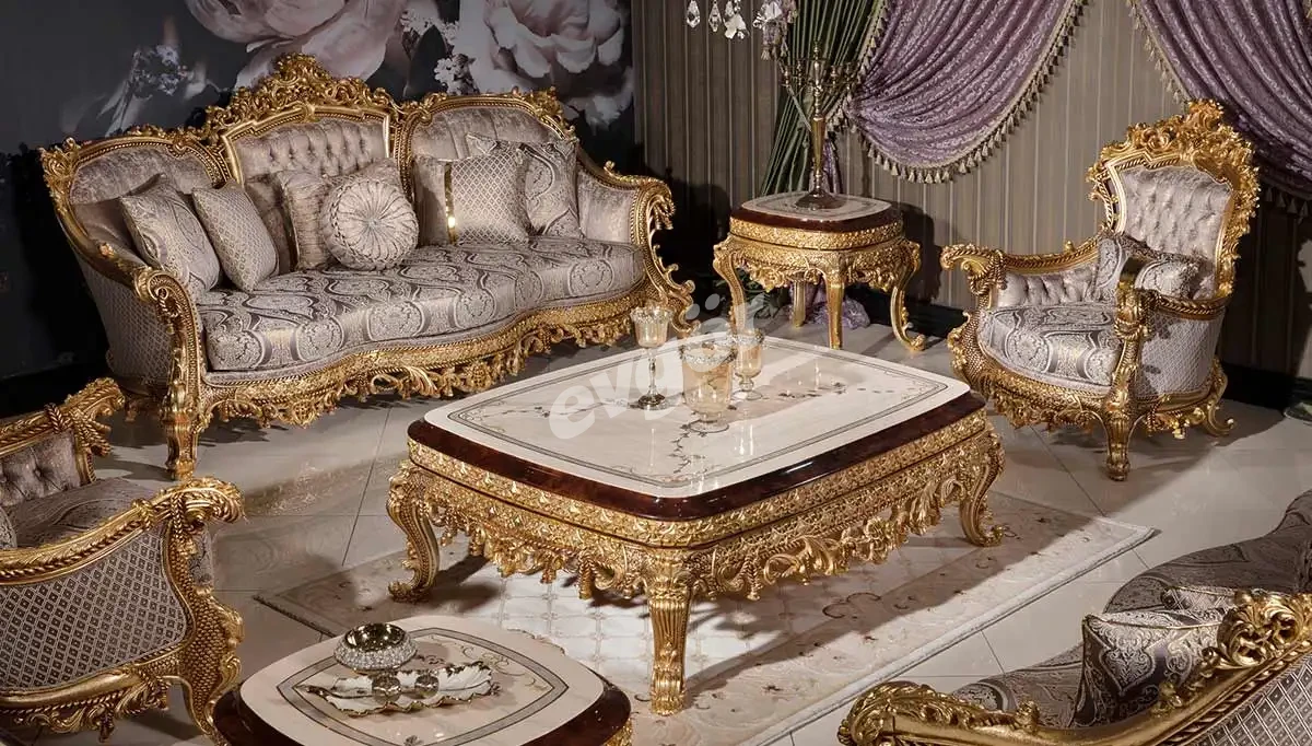 Taç Mahal Klasik Koltuk Takımı, şıklığı ve göz alıcı tasarımı ile salonunuzun vazgeçilmezi olacak.