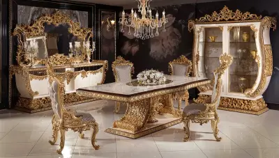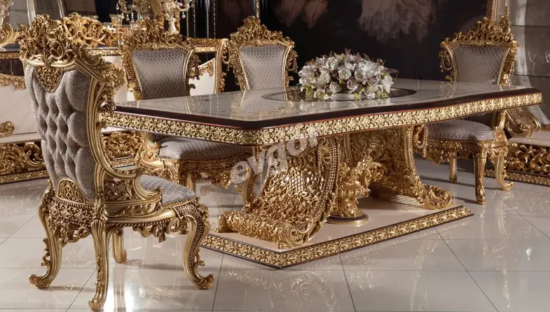 Taç Mahal Klasik Yemek Odası, şıklığı ve göz alıcı tasarımı ile salonunuzun vazgeçilmezi olacak.