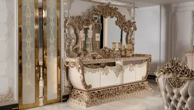 Ürünümüz Konsol, Konsol Aynası, Yemek Masası ve 6 adet Sandalye kombinasyonundan oluşmaktadır.