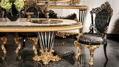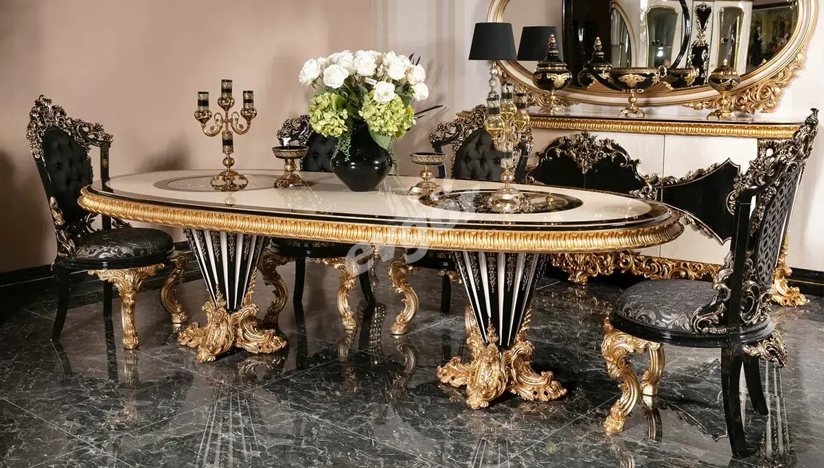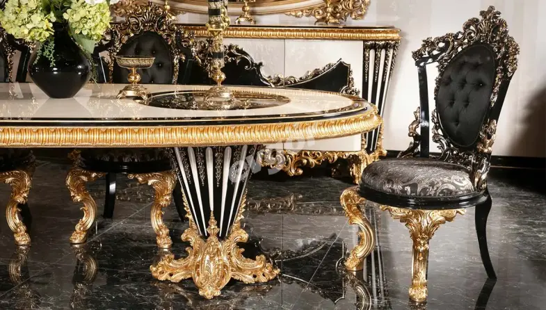 Tandiya Siyah Klasik Yemek Odası asaletli tasarımı ile göz kamaştırıyor.
