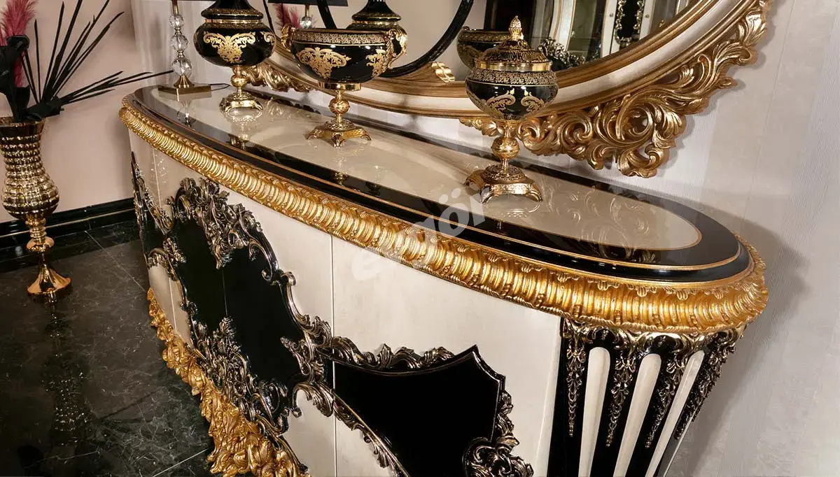 Tandiya Siyah Klasik Konsol + Ayna asaletli tasarımı ile göz kamaştırıyor.