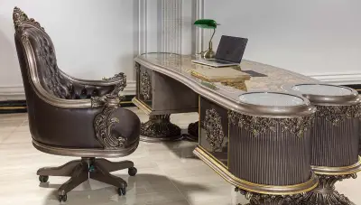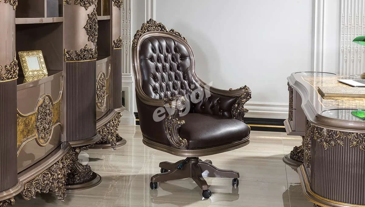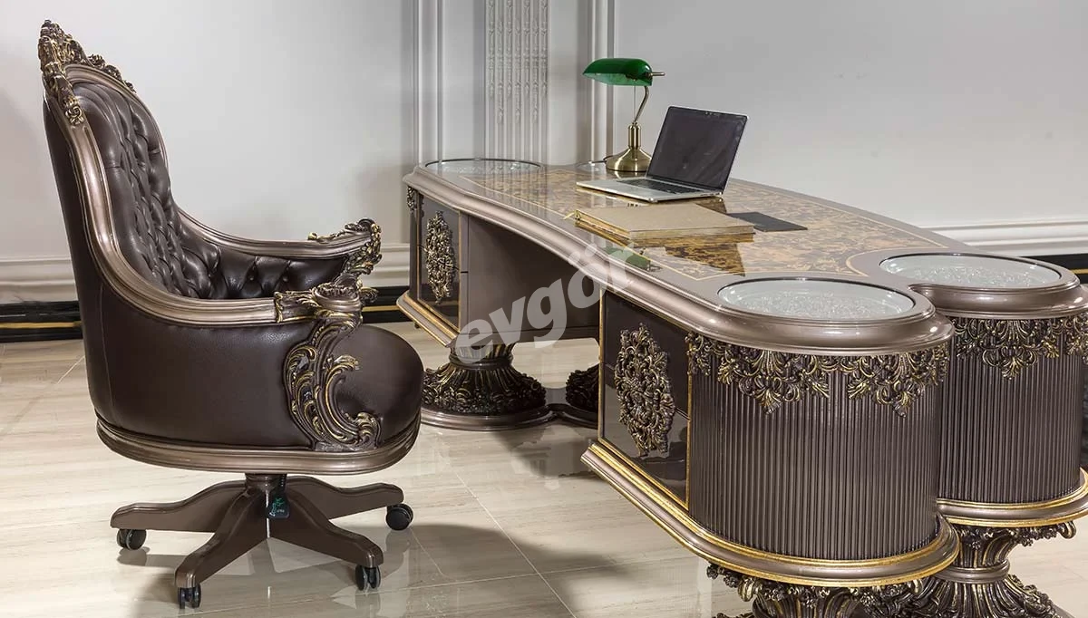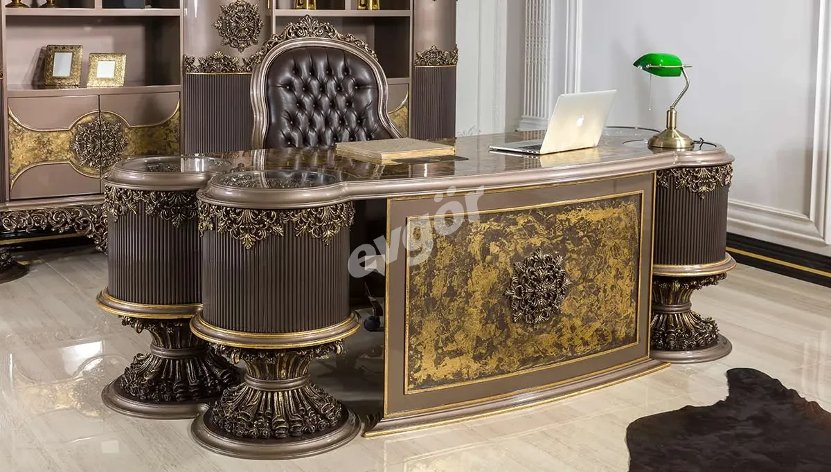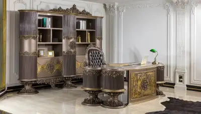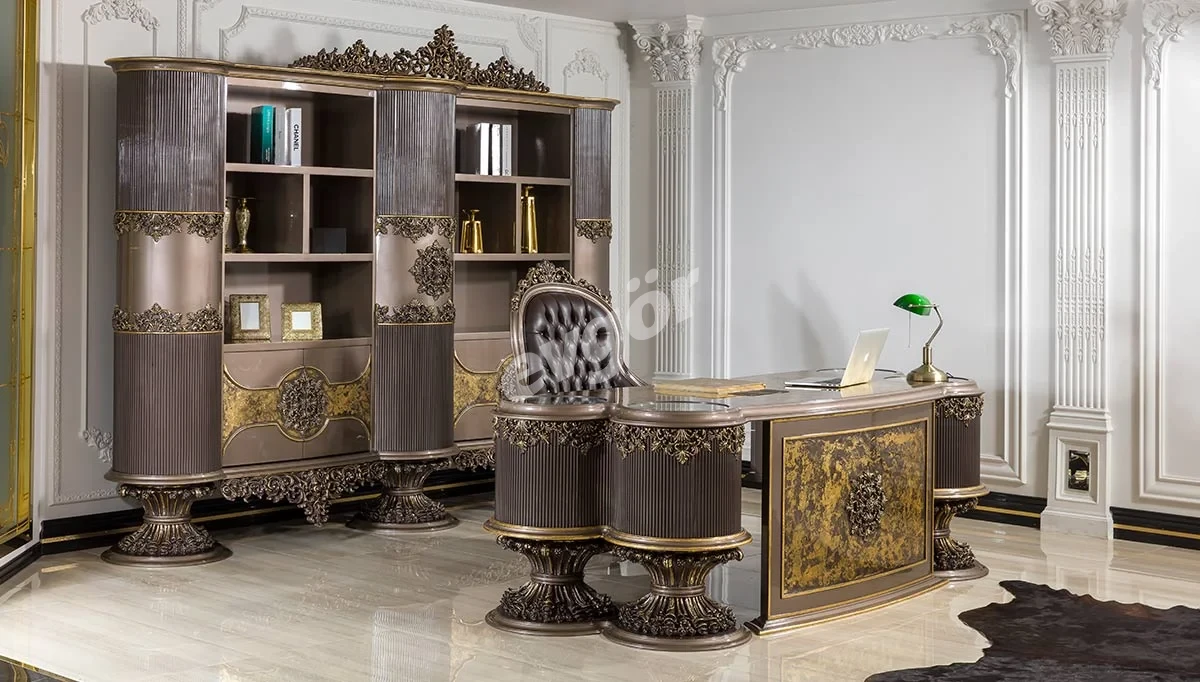 Ürünümüz Makam Masası, Makam Koltuğu ve Kütüphane (8 metre) kombinasyonundan oluşmaktadır.