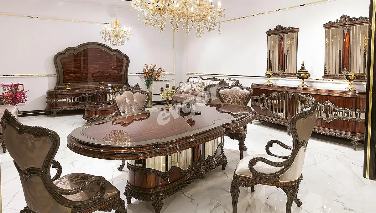 Bendy Bordo Klasik Yemek Odası asaletli tasarımı ile göz kamaştırıyor.