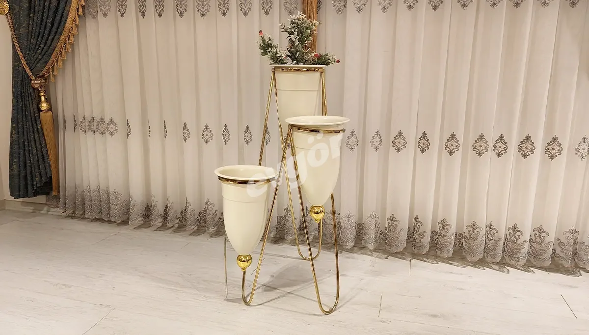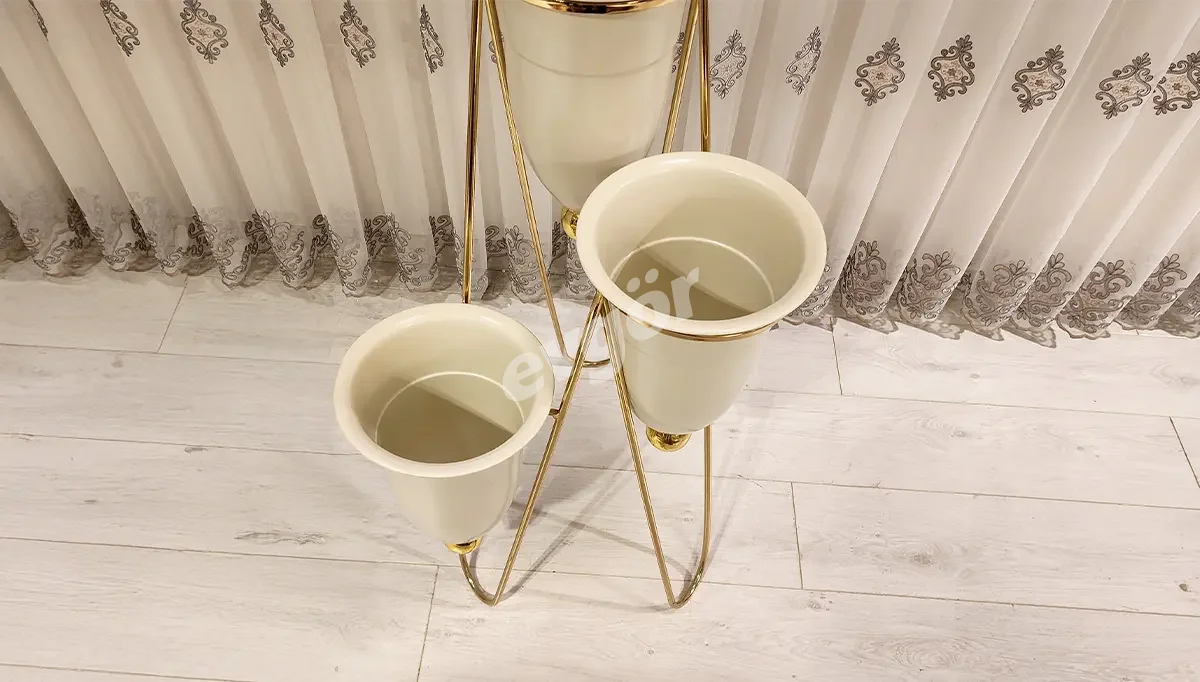 Neo Krem Üçlü Saksı (Hemen Teslim)