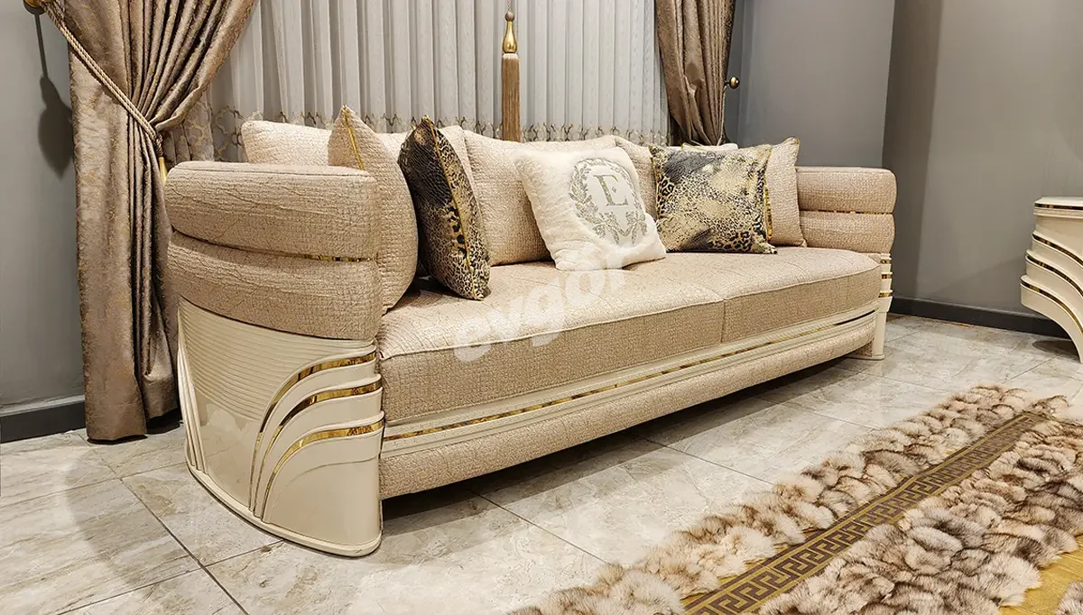Karan Modern Krem Üçlü Koltuk