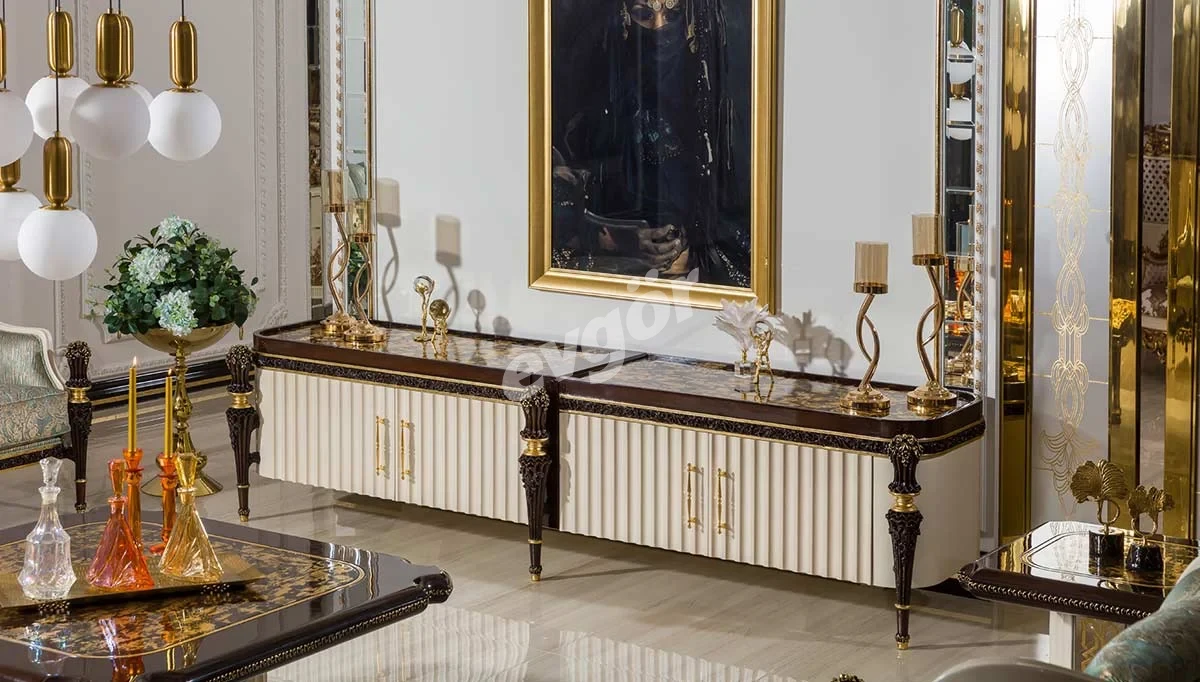 Saraylı Krem Klasik TV Sehpası