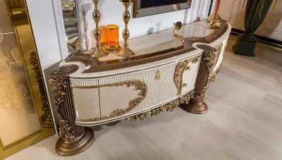 Saraylı Krem Klasik TV Sehpası