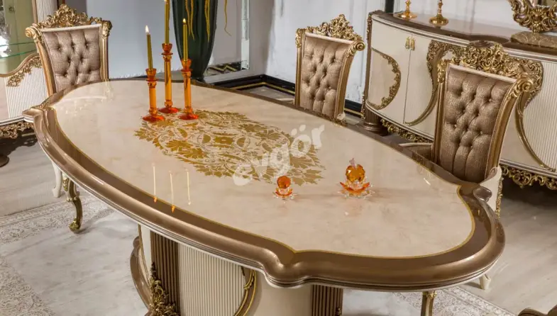 Ürünümüz Konsol, Konsol Aynası, Yemek Masası ve 6 adet Sandalye kombinasyonundan oluşmaktadır.
