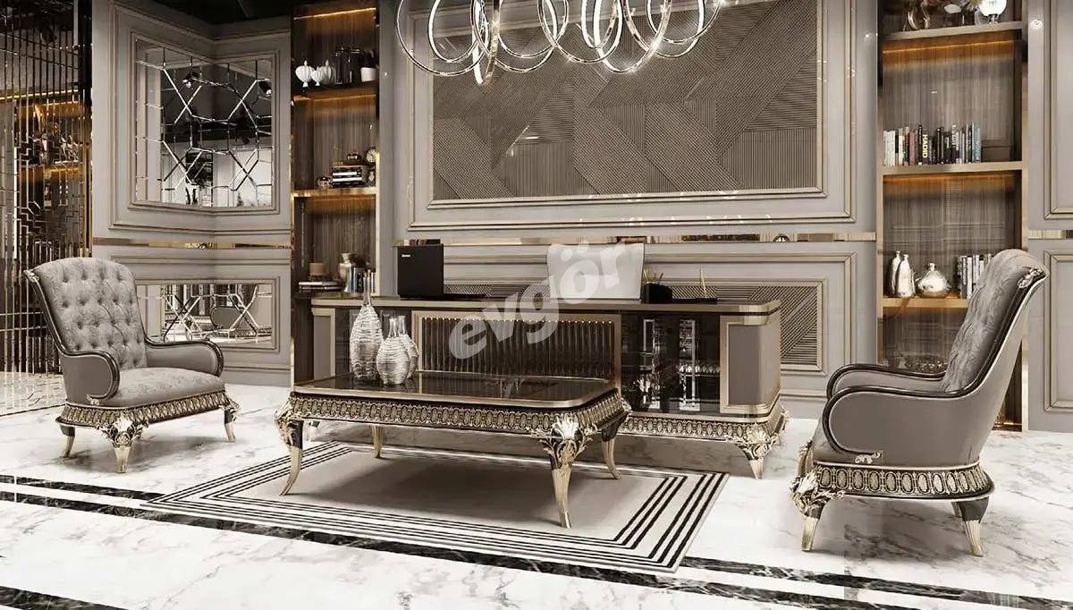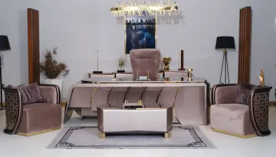 Ürünümüz Makam Masası, Makam Koltuğu ve 2 adet berjer kombinasyonu olarak satışa sunulmaktadır.