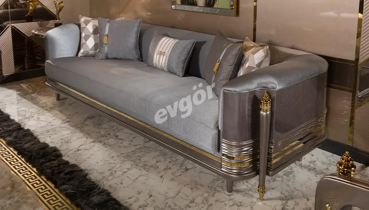 Valeria Mavi Üçlü Koltuk, şıklığı ve göz alıcı tasarımı ile salonunuzun vazgeçilmezi olacak.