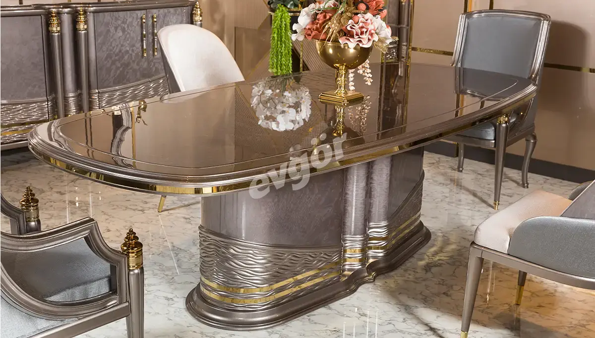 Valeria Yemek Masası, şıklığı ve göz alıcı tasarımı ile salonunuzun vazgeçilmezi olacak.