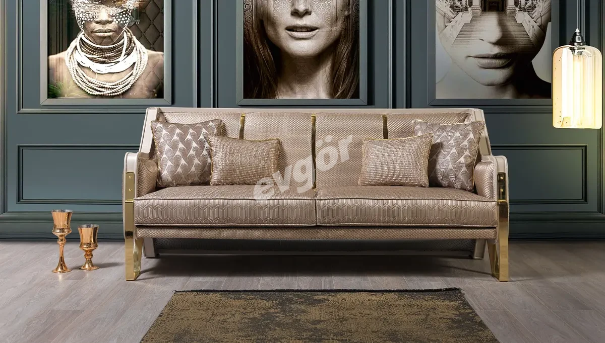 Meriç Modern Krem Üçlü Koltuk