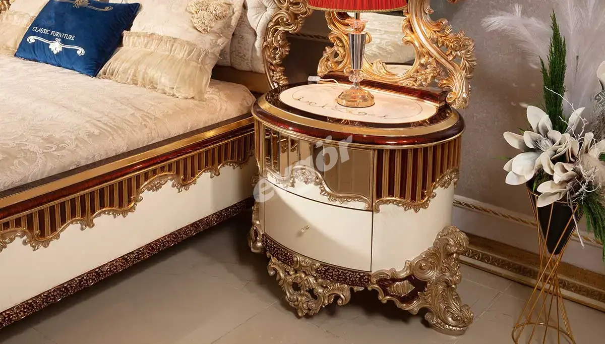 Klasik Yatak Odası parçaları arasında bulunan şık Yatak, Komodin, Şifonyer ve Gardırop varaklı tasarımların klasik estetiğiyle birleşerek benzersiz bir stili de sizlere sunuyor.
