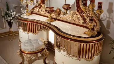 Klasik Yatak Odası parçaları arasında bulunan şık Yatak, Komodin, Şifonyer ve Gardırop varaklı tasarımların klasik estetiğiyle birleşerek benzersiz bir stili de sizlere sunuyor.