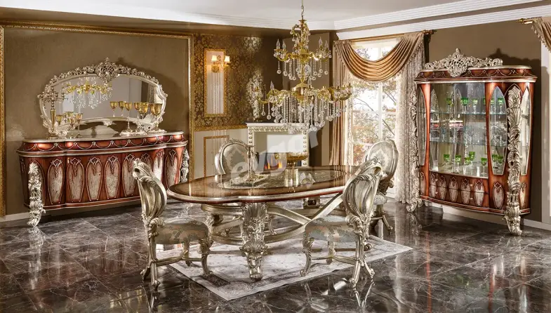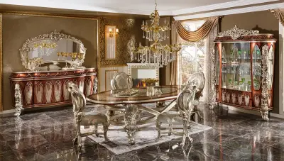 Yakut Bordo Klasik Yemek Odası, şıklığı ve göz alıcı tasarımı ile salonunuzun vazgeçilmezi olacak.