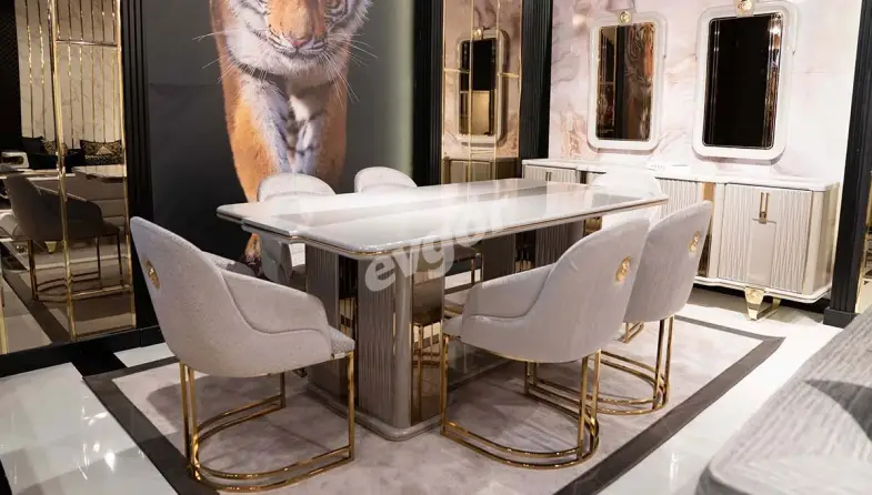 Yasmin Lüks Yemek Odası, şıklığı ve göz alıcı tasarımı ile salonunuzun vazgeçilmezi olacak.