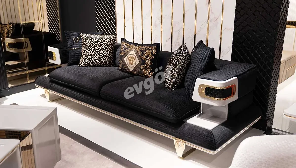 Yasmin Siyah Lüks Üçlü Koltuk